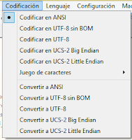 con el cual estamos trabajando. el que yo utilizo es NOTPAD ++ entramos en propiedades y convertimos el texto